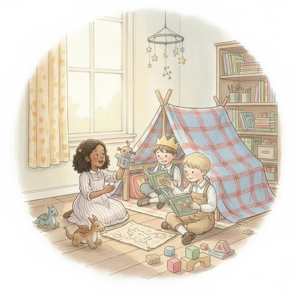 Through whimsical characters, imaginative settings, and meaningful moments, stories can help children: